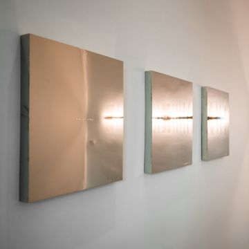 Nickel-plated aluminum wall plates, engraved text, three elements, 60 x 60 x 5 cm each, 2025 1/4