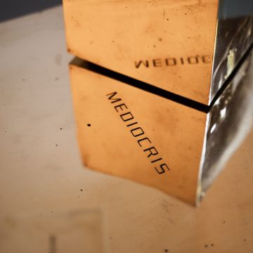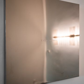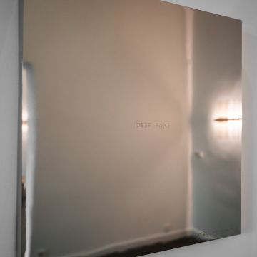 This triptych of polished nickel-plated aluminum panels functions simultaneously as mirror surface and semantic device. Each panel bears a centrally engraved phrase, smoke show, blind spot, and deep fake, terms drawn from contemporary language to denote deception, distortion, or concealed complexity. Arranged either in sequence or independently, the panels reflect the viewer with clarity, implicating them directly in the reading. The seductive, mirror-like finish invites visual engagement, while the engraved text quietly destabilizes it, acting as conceptual fissures in the surface. The result is an active tension between appearance and meaning, visibility and omission. Together, these pieces operate as a minimalist lexicon of illusion. They don't define, but rather expose the slipperiness of perception and the instability of truth. In confronting one's own image along these culturally loaded terms, viewer is invited into a space of self-surveillance and critical recognition, where what is seen may not be what is there, and what is there may not want to be seen.