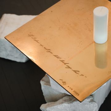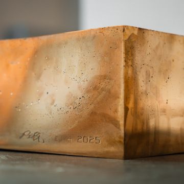 Bronze cast pedestal, polished, hand engraved, 60 x 60 x 15 cm, 2025 1/4