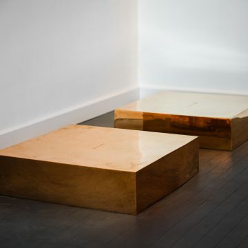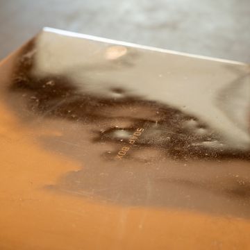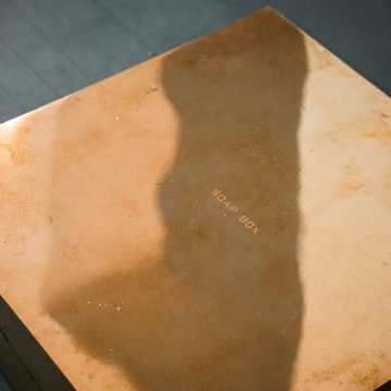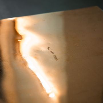 Soap Box reactivates a historical form of public address, elevated both literally and materially into a minimalist sculpture of cast, polished bronze. Its gleaming surface reflects the viewer while grounding them within a lineage of civic speech. The small central engraving, Soap Box, refers to the improvised oratory platforms first used in London's Hyde Park in 1855, where citizens of all classes would voice their grievances and convictions in the open air.