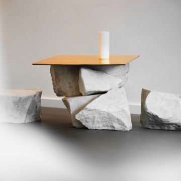 Through its interplay of permanence and instability, polish and rupture, Date Night on the Rocks interrogates the architecture of the couple as both sculptural and psychological construct. The piece echoes minimalist concerns with form and balance, while invoking the relational strategies of late 20th century conceptualism. It invites a reading in which the geological temporality of the materials undermines the fleeting, often fraught rituals of human connection. The result is a mise-en-scène of desire and disillusionment at once absurd, tender and deeply embodied.