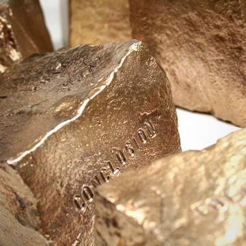 Six polished bronze cast cobblestones, engraved, approx. 6 x 6 x 6 cm, 2019 1/4
