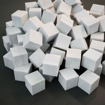 White marble, engraved, 100 cubes per city: LA, NY, London, 2025 1/4
