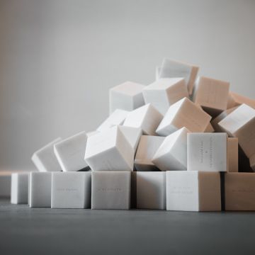 Compound is an ongoing sculptural project that reflects on the city as a collective human construct while acknowledging its profound role in the artists own life. Each iteration consists of one hundred white marble cubes, piled randomly and every surface is engraved with names of individuals, both real and fictional, who have in ways monumental or modest, shaped the identity of a metropolis.